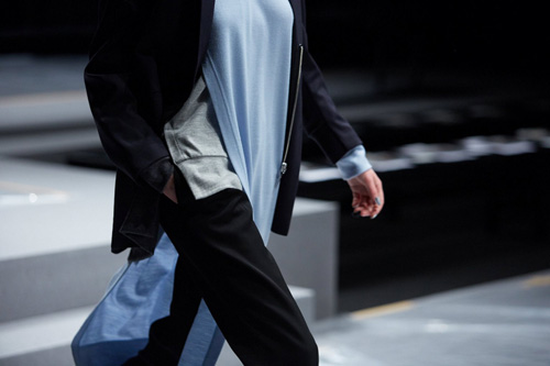 今シーズンは、レイヤード、アシンメトリーでマニッシュなスタイルに加えて、ワークやミリタリーなどユーティリティウェアを取り入れ提案しています。